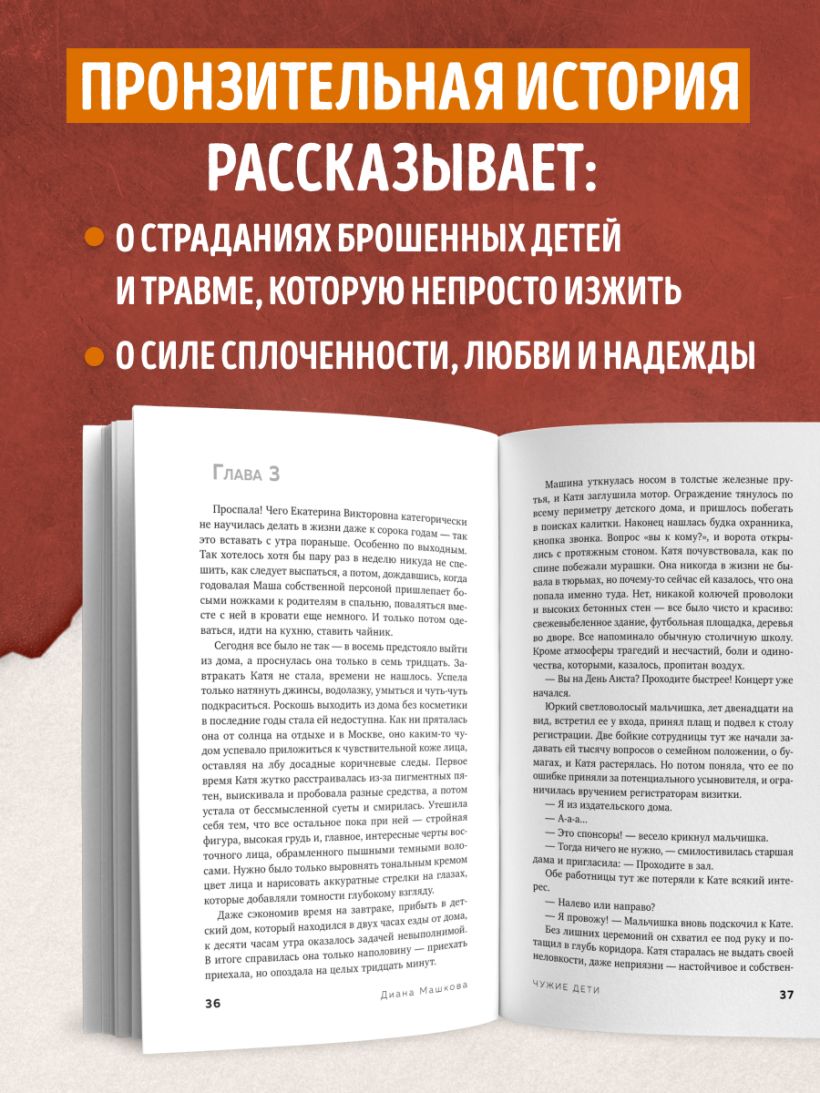 Скоро в жизни семьи наступил разлад. Травмированная своей трагедией озлобленная девочка вела себя так, что муж Екатерины почти перестал бывать дома, а она сама оказалась на грани нервного срыва. Когда по воле судьбы женщине пришлось взять в семью еще и подростка Лешу — между приемными детьми началась борьба за внимание, ревность и сложная адаптация к новой жизни. И все же этот роман — реальная история о силе сплоченности, любви и надежды. После всех испытаний семья Екатерины стала еще крепче — настолько, что вокруг нее объединились и другие семьи, готовые помогать сиротам и усыновлять подростков из детдома...
