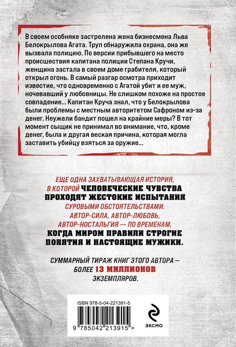 В своем особняке застрелена жена бизнесмена Льва Белокрылова Агата. Труп обнаружила охрана, она же вызвала полицию. По версии прибывшего на место происшествия капитана полиции Степана Кручи, женщина застала в своем доме грабителя, который открыл огонь. В самый разгар осмотра приходит известие, что одновременно с Агатой убит и ее муж, ночевавший у любовницы. Не слишком похоже на простое совпадение… Капитан Круча знал, что у Белокрылова были проблемы с местным авторитетом Сафроном из-за денег. Неужели бандит пошел на крайние меры? В тот момент сыщик не принимал во внимание что, кроме денег, была и другая веская причина, которая могла заставить убийцу взяться за оружие…