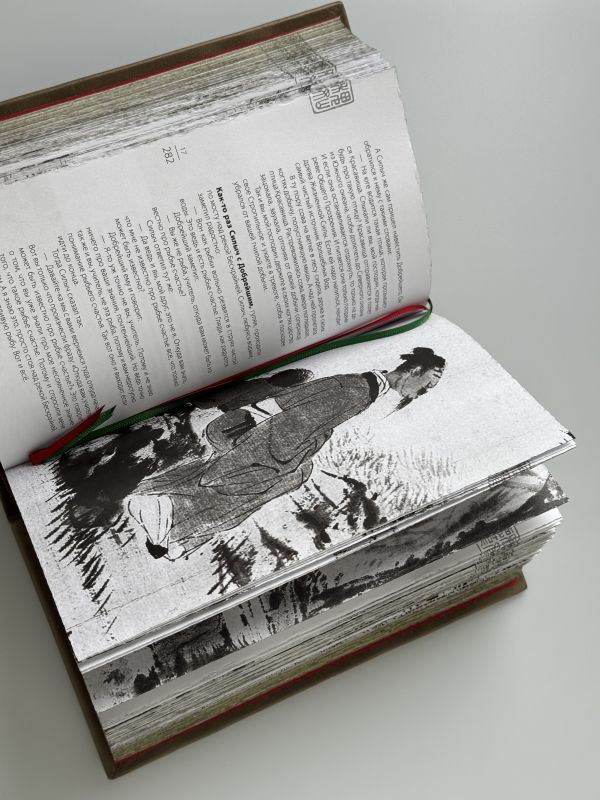 Книга в коллекционном инкрустированном переплёте. Переплет изготовлен их двух видов натуральной кожи по технологии 19 века и украшен сплошным тончайшим тиснением, в полном соответствии с лучшими образцами переплетов европейских мастеров. В оформлении переплета использованы универсальные растительно-геометрические плетёные орнаменты, благодаря им книга будет отлично смотреться на любой книжной полке. Лента для закладывания страниц и каптал, скрепляющий верх и низ объемного тома, изготовлены из шелка. Бумага в книге легкая, матовая, что обеспечивает комфортное чтение даже длительное время, иллюстрации напечатаны на высокобелой мелованной бумаге. Обрез книги вызолочен вручную. Книга помещена в прочный футляр с магнитным замком и шелковой лентой, облегчающей вынимание. На крышке футляра тисненая золотом марка серии. К книге прилагается красочный сертификат, подтверждающий уникальность издания, он вложен в каждый экземпляр экземпляр и пронумерован вручную.