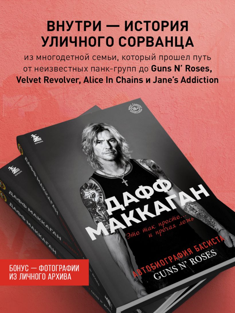 Обо всем этом Дафф рассказывает в автобиографии. Через его воспоминания мы увидим, как восходила звезда славы Guns N’Roses, какими в ту пору были участники группы (в том числе легендарный Слэш) и как придумывались хиты, покорившие чарты.