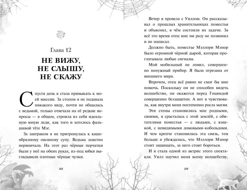 Каникулы в старинном семейном поместье вместе с престарелой тётушкой м Дана думала, что это будет самое скучное время в её жизни. Как же она ошибалась! Стоило ей переступить порог Мэллори Мэнор, как она поняла: этот дом похож на декорации фильма ужасов! Здесь творятся странные вещи: повсюду мелькают призрачные тени, по ночам из тёмных коридоров доносятся пугающие голоса, а некоторые двери то появляются, то исчезают… Что творится в поместье? И почему хозяйка дома, тётя Мэг, пригласила к себе Дану на самом деле?