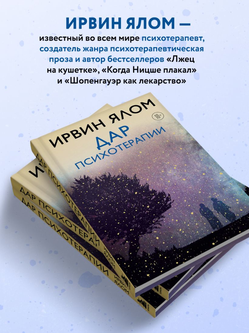 Интригующий сюжет, потрясающие открытия, проницательный и беспристрастный взгляд на терапевтическую работу. Ялом показывает изнанку терапевтического процесса, позволяет читателю вкусить запретный плод и узнать, о чем же на самом деле думают психотерапевты во время сеансов. Книга Ялома — прекрасная смотровая площадка, с которой ясно видно, какие страсти владеют участниками психотерапевтического процесса.