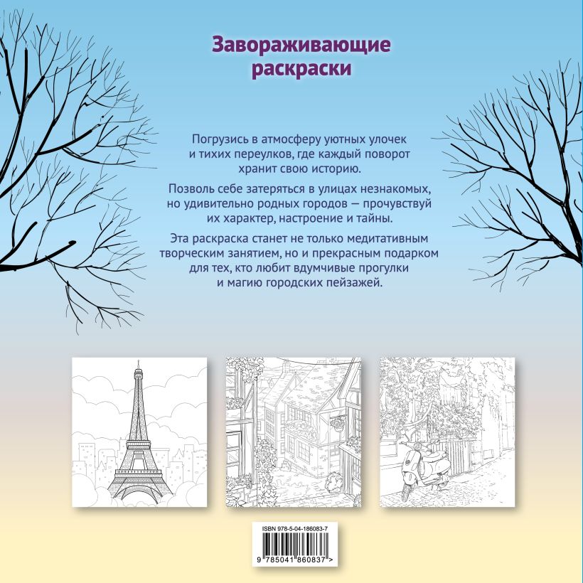 Насладитесь атмосферой уютных улочек и переулков, проникнетесь желанием затеряться в переулках незнакомых, но как будто близких каждому городов, познакомиться с ними и прочувствовать дух городов, которые хранят свои тайны. Они точно не оставят вас равнодушными! Все иллюстрации односторонние, поэтому раскрашивать их можно, не боясь испортить рисунок на обороте. Раскраска также может стать отличным подарком любителям долгих вдумчивых прогулок.