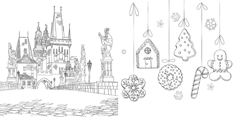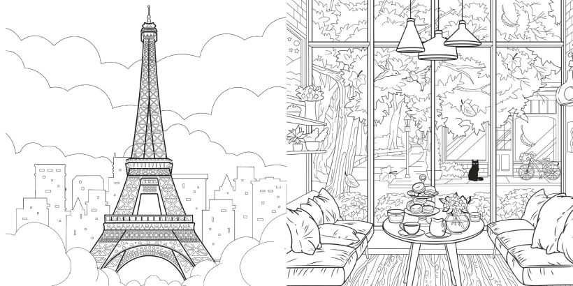 Гармония города. Атмосфера уютных улиц. Раскраска
