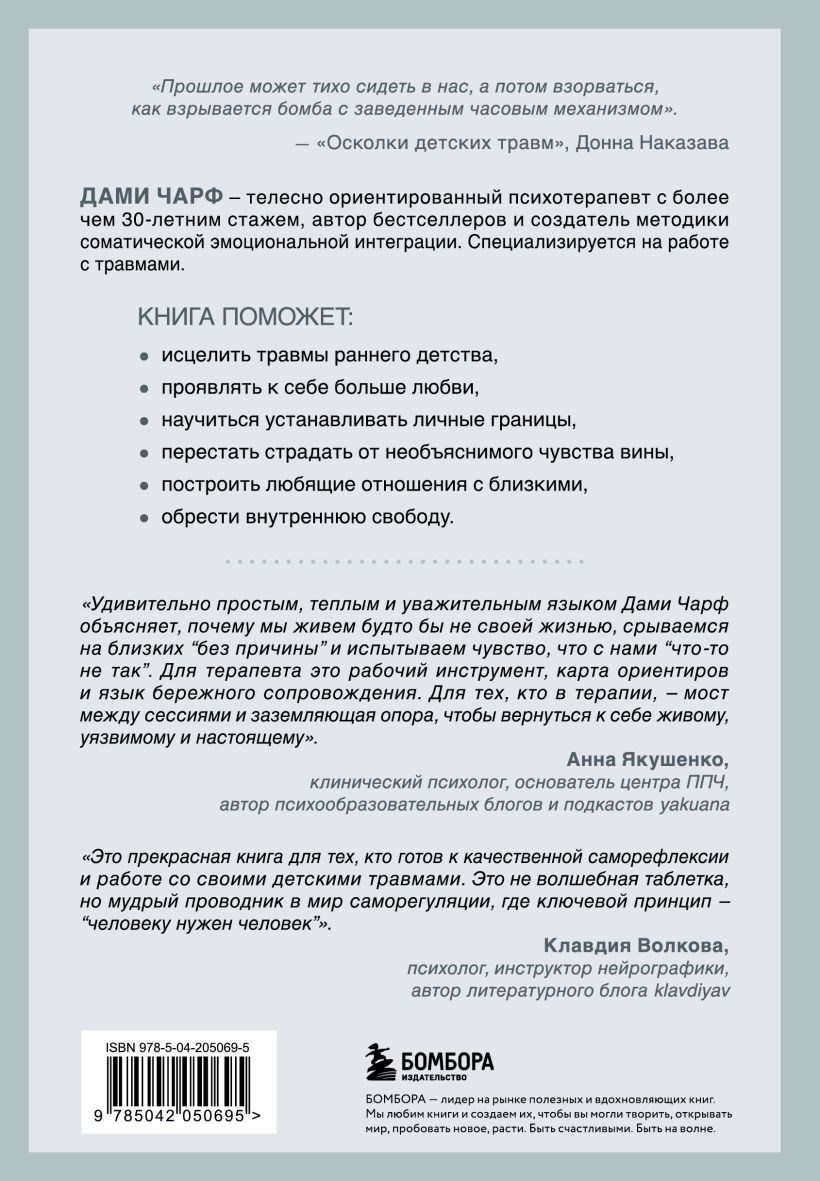 Дами Чарф — телесно-ориентированный психотерапевт с более чем 30-летним стажем, автор бестселлеров и создатель методики Соматической эмоциональной интеграции. Специализируется на работе с травмами.