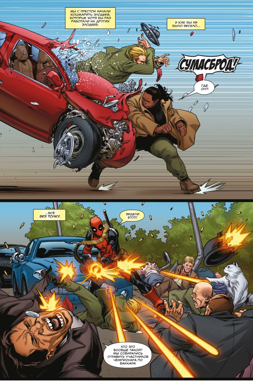 Заклятый враг Дэдпула вернулся — да так, что кровь в жилах стынет. Сможет ли бывший голос в голове Дэдпула жестоко отомстить тому, кто его отверг? Неужели Сумасброд придумал, как убить Уэйда раз и навсегда? Или он затеял что-то похуже? Всё катится к чертям, и Дэдпул решает взять дело в свои руки! Пойдёт ли он на сделку с совестью, чтобы спасти близких? Нет, герой Marvel на такое неспособен! А также: вернёмся в будущее, чтобы понаблюдать за удивительными приключениями Дэдпула 2099: там дочки Уэйда дерутся за его наследие, а Железный Кулак показывает, насколько он бессмертен!