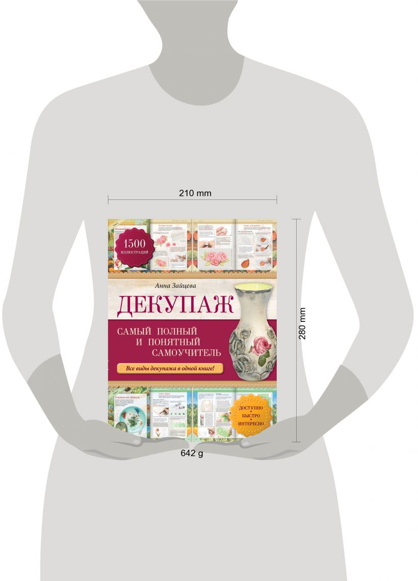 Предлагаем вашему вниманию, пожалуй, самый понятный и подробный самоучитель по декупажу - удивительному виду рукоделия, обладающего поистине безграничными декоративными возможностями. На страницах самоучителя вы найдете всю необходимую информацию о материалах и инструментах, о способах и приемах декорирования, о композиционных решениях и цветовых сочетаниях, о стилях и видах декупажа на разных основах, включая дерево, стекло, металл и даже ткань! Подробные описания сопровождаются большим количеством пошаговых фотографий, а каждая техника представлена с учетом нюансов, с которыми вы можете столкнуться в процессе работы. Все это делает книгу поистине уникальной, и, купив ее однажды, вы уже не сможете с ней расстаться!