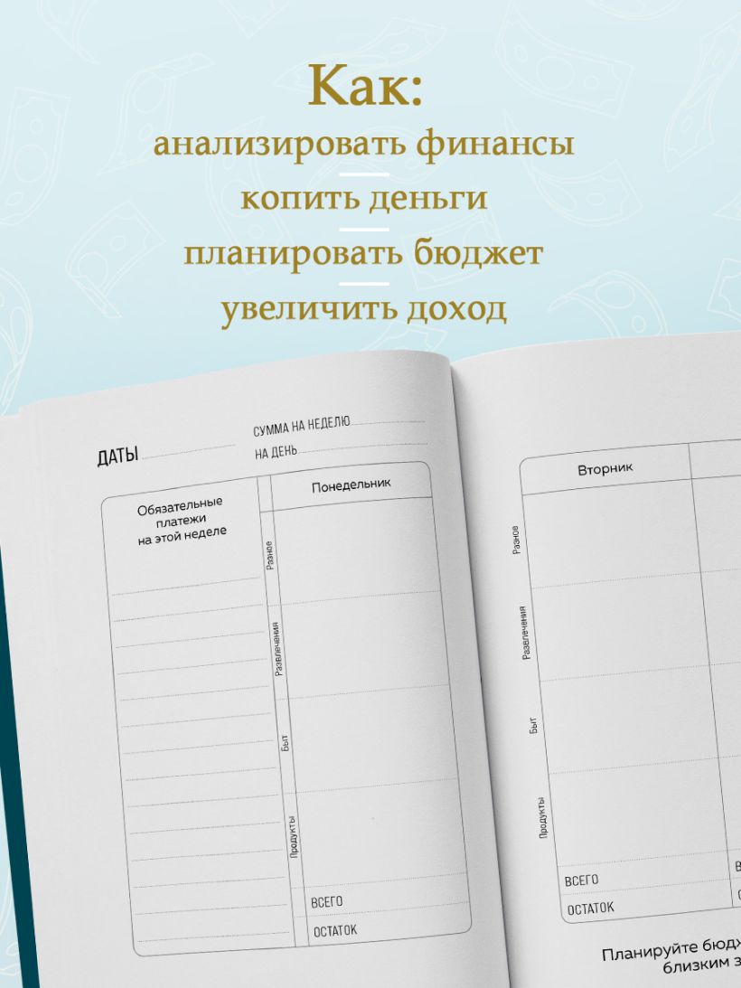 Стильный дизайн, мягкая обложка и удобный формат А5 позволит носить этот ежедневник с собой. Распределяйте свой бюджет и исполняйте все мечты!