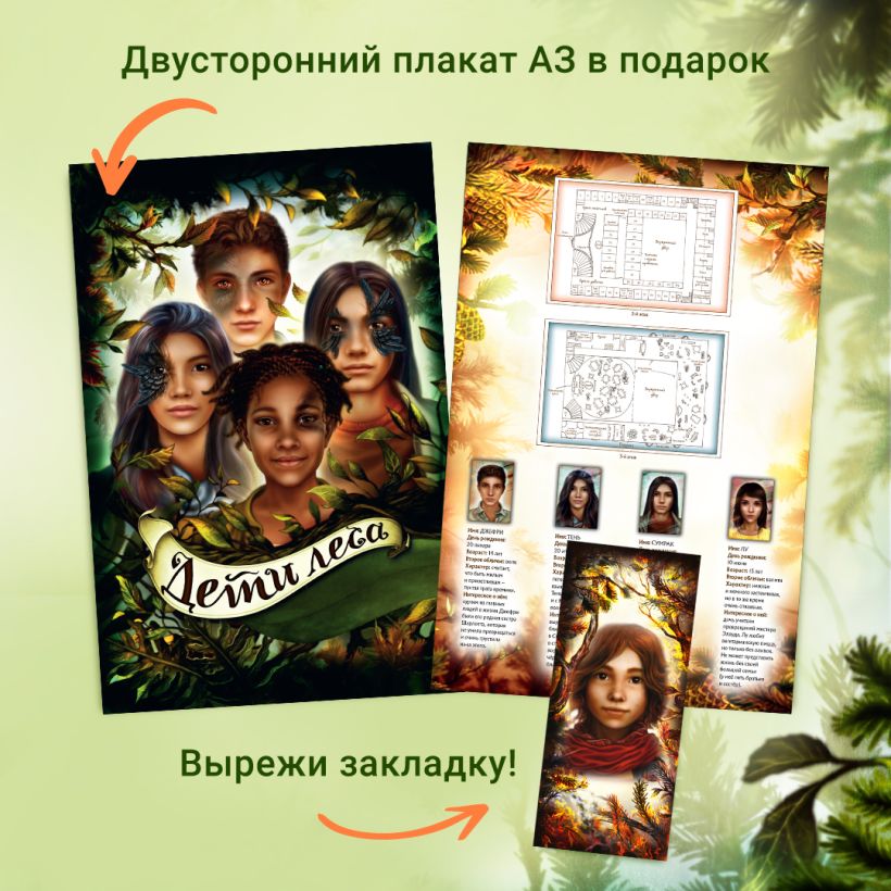 В комплект входят четвёртая, пятая и шестая книги серии «Дети леса»: «Месть пумы», «Секрет сфинкса», «День огня». Внутри вы найдете двусторонний плакат с изображением героев, их описанием и уникальными картами школы «Кристалл».