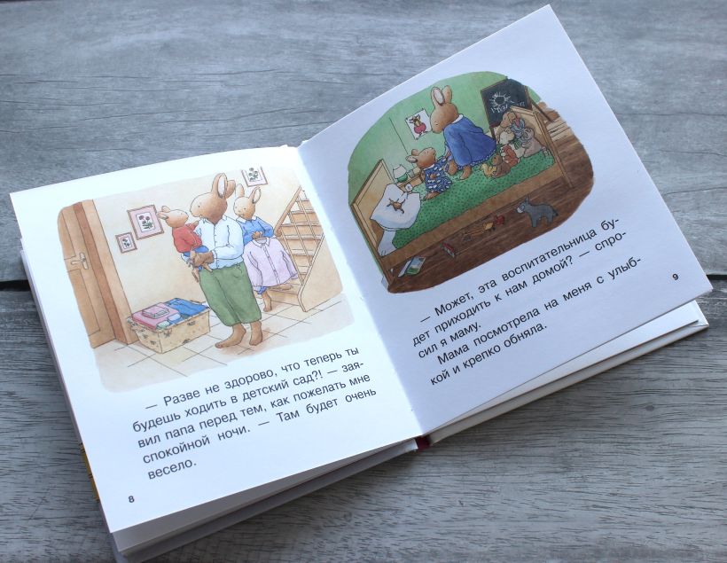 - Добрая и жизненная история — задавая вашему малышу вопросы типа «Что делал Том перед тем, как пойти в детский сад?», «Что подарила мама Тому?», «Что делали в детском саду Том и другие крольчата?», вы сможете развить речевые навыки ребёнка, потренировать память, а также лучше понять историю и ситуацию, описанную в ней.