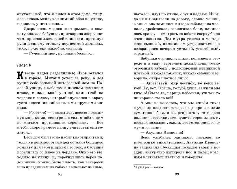 Повесть «Детство» — первая часть автобиографической трилогии Максима Горького «Детство. В людях. Мои университеты». В этой книге автор вспоминает время и события, когда ему было 9 лет: смерть отца, переезд с матерью к её родителям, жизнь в доме сурового и жадного деда.