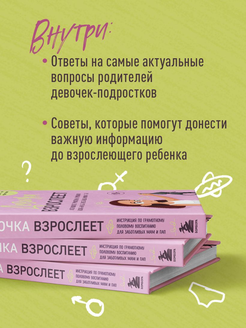 Книга Анастасии Дегтевой ответит на самые актуальные вопросы, которые могут возникать у родителей, — от распространенных гинекологических заболеваний до причин РПП. А также поможет выстроить теплые и близкие отношения с дочерью-подростком, чтобы вы могли обсудить с ней любую значимую тему или проблему.