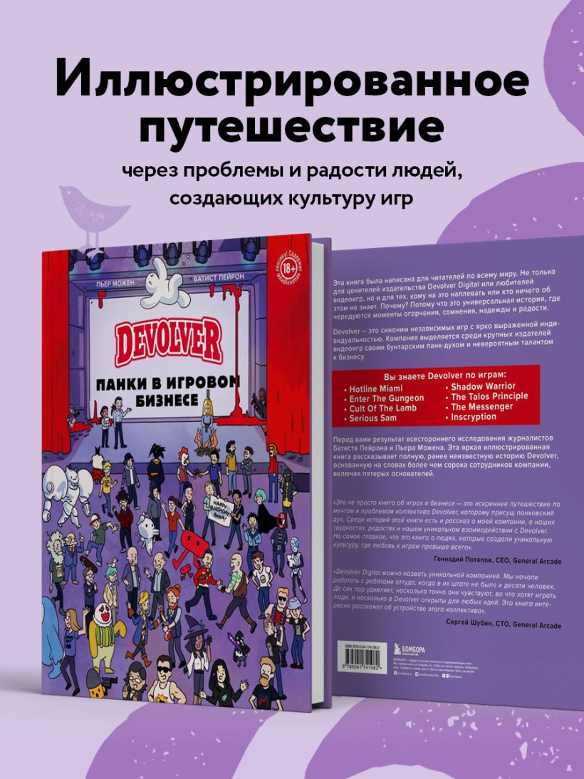 «Это не просто книга об играх и бизнесе — это искреннее путешествие по мечтам и проблемам коллектива Devolver, которому присущ панковский дух. Среди историй этой книги есть и рассказ о моей компании, о наших трудностях, радостях и нашем уникальном взаимодействии с Devolver. Но самое главное, что это книга о людях, которые создали уникальную культуру, где любовь к играм превыше всего». — Геннадий Потапов, CEO, General Arcade