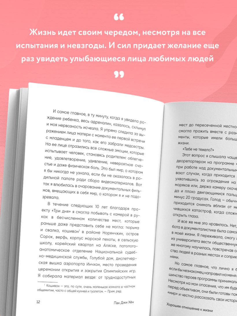 Эта книга — сборник жизненных историй, которые Пак Джи Хён узнала от многочисленных людей, встретившихся ей в течение 15 лет работы режиссером документальных фильмов для телепрограммы «3 дня».