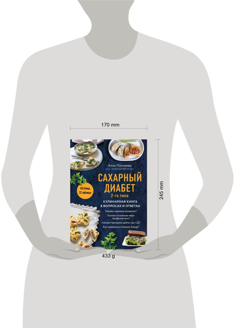 Алла Погожева, д.м.н., профессор НИИ питания, более 20 лет работающая с проблемой питания для улучшения здоровья, предлагает книгу по улучшению качества жизни для страдающих СД 2-го типа. В форме вопросов и ответов она предельно ясно и конкретно раскрывает понятие сахарного диабета, его признаки, параметры, осложнения, цели и причины необходимости лечения этого заболевания. Особое внимание автор уделяет питанию, которое должно быть не только правильным, но и вкусным. Ей собрано 145 рецептов — первых и вторых блюд, закусок и десертов (с сахарозаменителями, о которых рассказано в первой части книги), которые подходят не только для лечения, но и для профилактики заболевания, а также для включения в рацион здоровых людей в качестве разнообразия каждодневного меню.