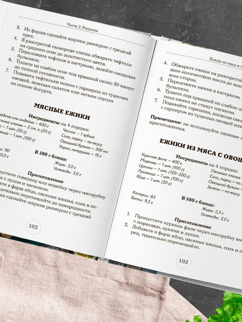 Помимо указанных условий, обращайте внимание на некоторые тонкости, представленные в книге. Предлагаемые вам рецепты снабжены информацией о примерном составе КБЖУ — то есть, о количестве белков, жиров и углеводов на 100 граммов продукта. Необходимо учесть, что показатели КБЖУ одного и того же продукта в разных изданиях могут отличаться.