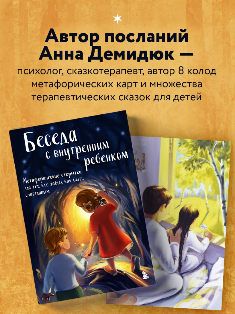 Автор посланий Анна Демидюк — психолог, сказкотерапевт, автор 8 колод метафорических карт и множества терапевтических сказок для детей.