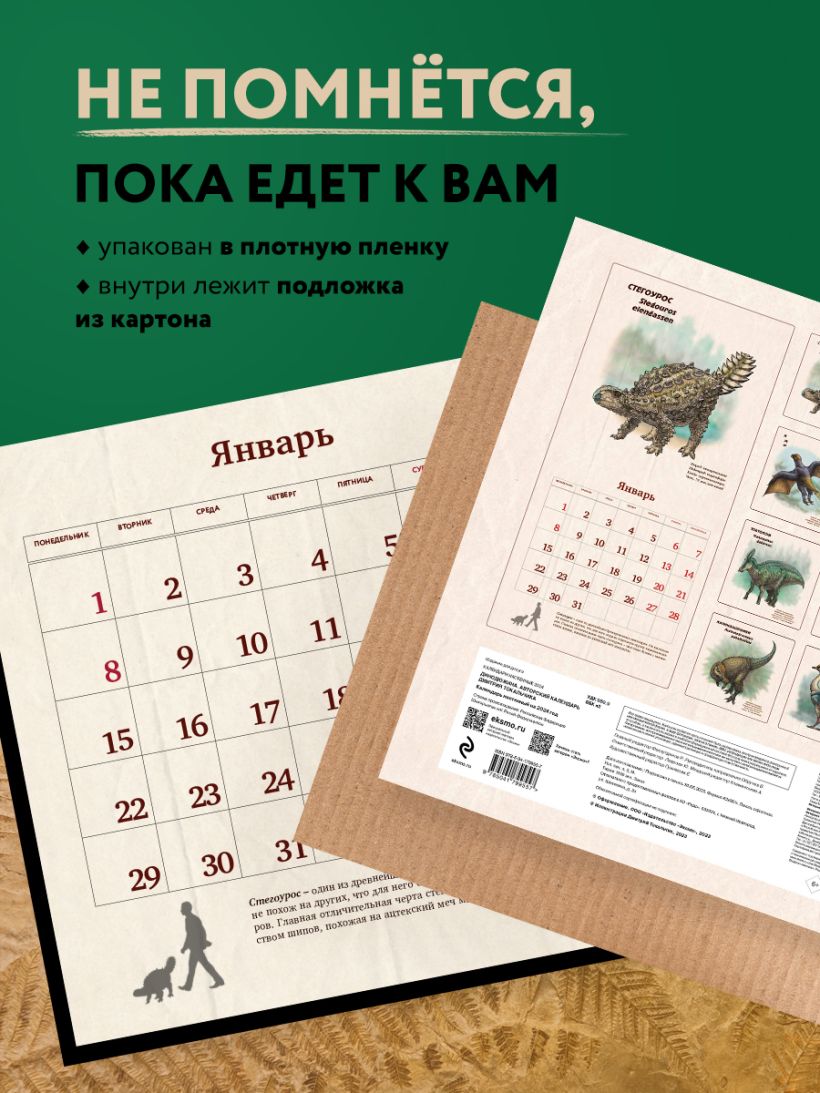 Календарь станет отличным подарком для тех, кто интересуется палеонтологией и историей древнего мира, а также обожает фильмы о динозаврах.