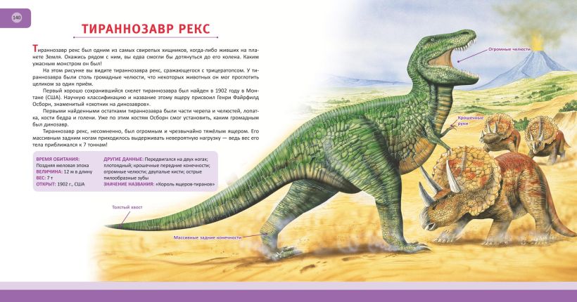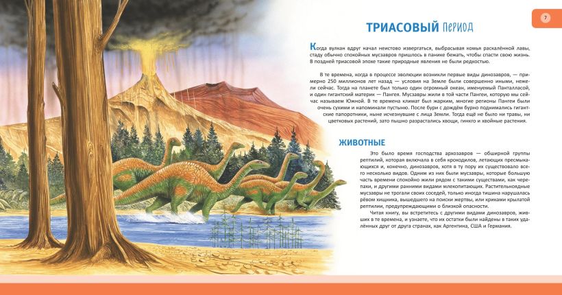 Эта красочная энциклопедия погрузит тебя в удивительный мир устрашающих и величественных динозавров, животных и вулканов. С безопасного расстояния восхитись красотой действующих «огнедышащих гор», могуществом доисторических ящеров и современных зверей и расширь свой кругозор, открывая для себя удивительные секреты окружающего мира. Знаешь ли ты, что мирный бегемот может оказаться опаснее свирепого тигра? Или что травоядный динозавр был способен одолеть грозного хищника? А где на Земле находится самый пугающий вулкан? Книга про динозавров, животных и природу ответит на эти и многие другие неожиданные вопросы, познакомит юного читателя с самыми грозными и невероятно любопытными существами нашей планеты. Большие красочные иллюстрации и фотографии, а также специальный крупный, легко читаемый текст делают познавательный процесс интересным и понятным. А занимательные тесты в конце каждой главы помогут закрепить полученные знания. Издание идеально подходит для детей младшего школьного возраста. Компактный формат энциклопедии позволит не только читать ее дома, но и носить с собой. Красочная увлекательная книга подходит для совместного изучения всей семьей и станет прекрасным подарком по любому поводу!