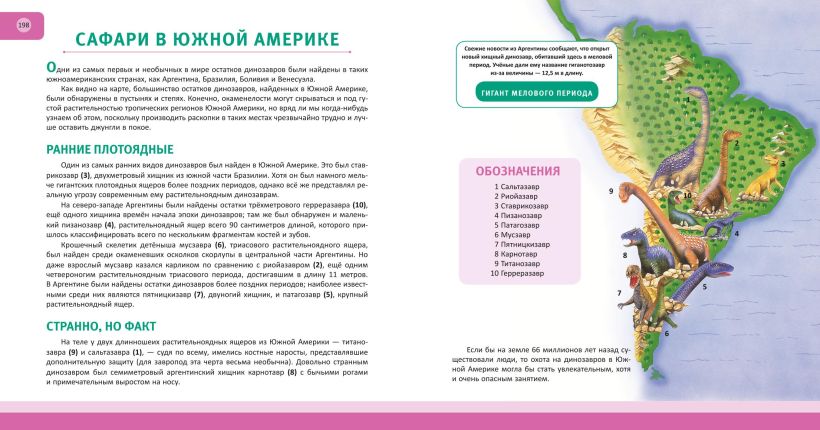 Захватывающая энциклопедия для юных исследователей эпохи динозавров! На каждом развороте читателя ждут гигантские объёмные модели древних ящеров, раскрывающиеся элементы и панорамные виды, превращающие книгу в увлекательное 3D-путешествие. Ребёнок узнает самые невероятные факты о жизни доисторических гигантов, а уникальные pop-up фигурки сделают чтение очень весёлым! Издание предназначено для дошкольного возраста, текст для чтения взрослыми детям.