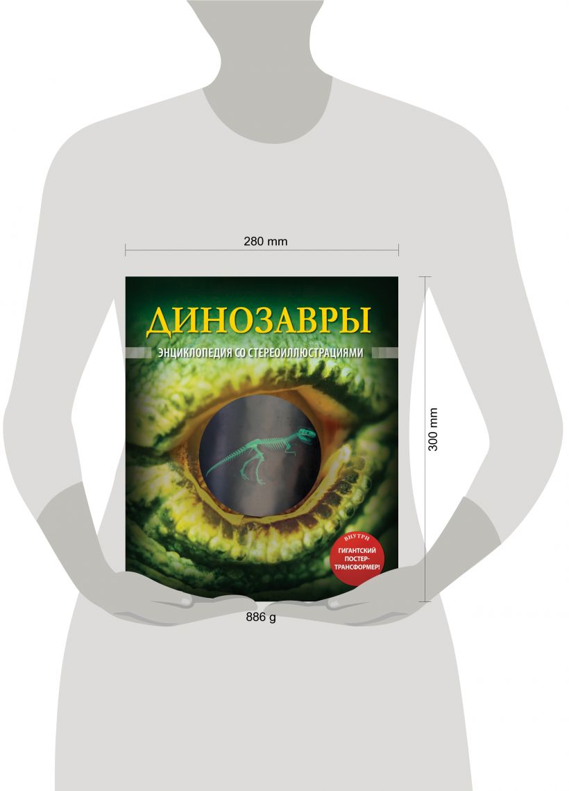 В книжке ребята найдут гигантский постер-трансформер, 6 картинок-голограмм, данные новейших исследований и увлекательные рассказы о динозаврах.
