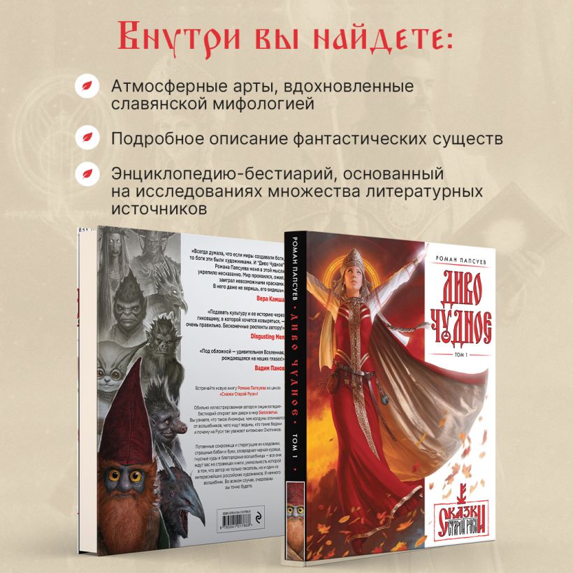 Итак, поприветствуйте первый том «Дива Чудного». Его прекрасно проиллюстрированная энциклопедия-бестиарий перенесет своих читателей в чудесный мир Белосветья, где они узнают о том, что из себя представляет Иномирье, чего добиваются ведьмы, кто такие бедаки, чем так прославлены китежские охотники на Руси и чем разница между волшебниками и колдунами. Кладовики, неусыпно охраняющие свои сокровища, жуткие буки и бабаи, противные худы, зловредная черная курица и величественные волшебницы — ожидают вас на страницах этой необычной книги, написанной тоже, в своем роде, магом и чародеем. И поверьте на слово — вы точно не будете разочарованы после знакомства с ней!