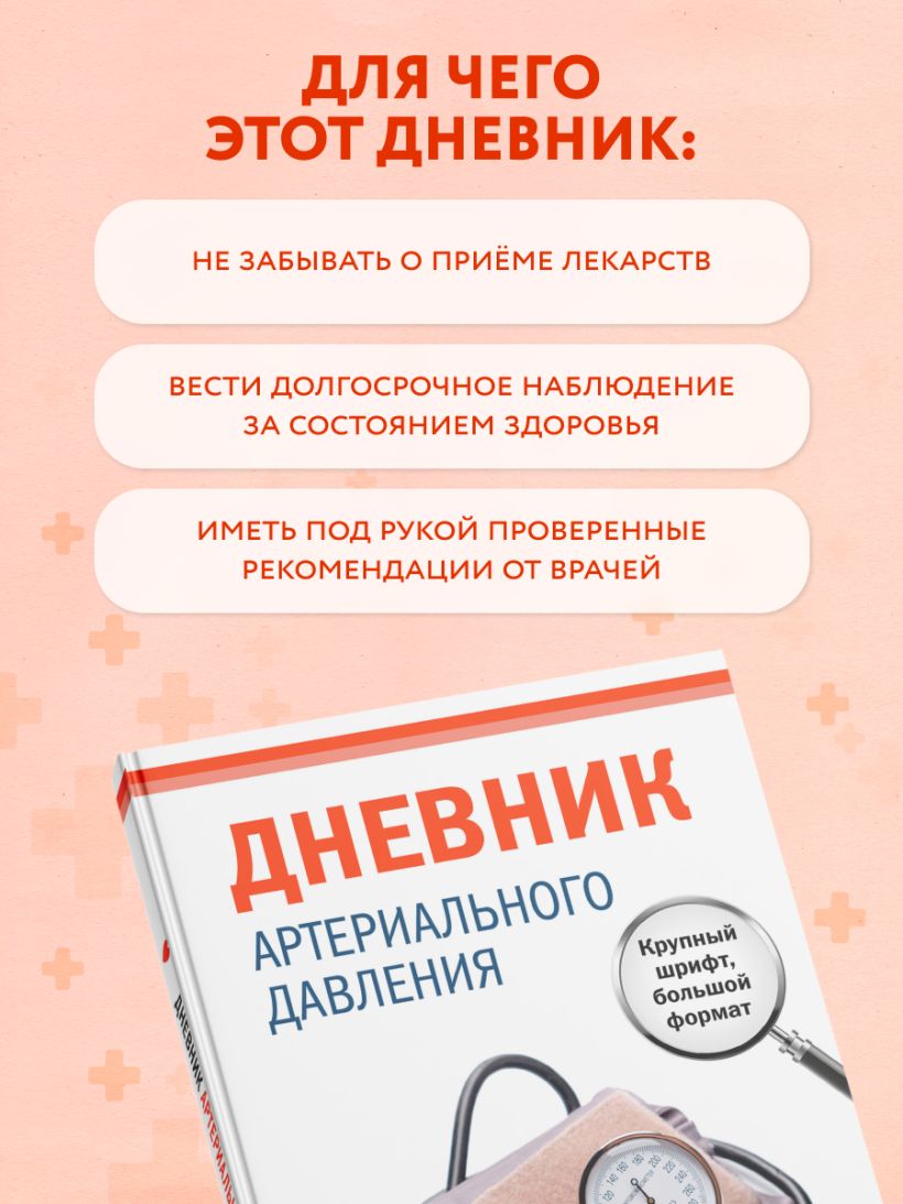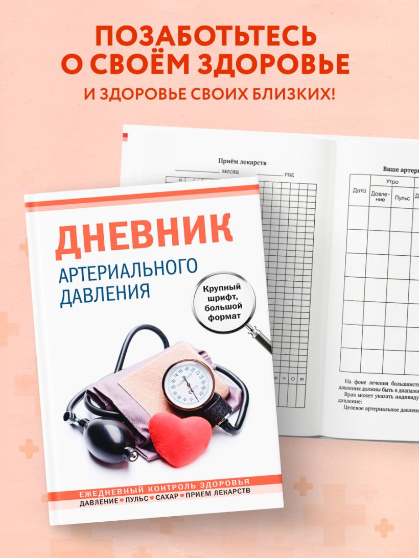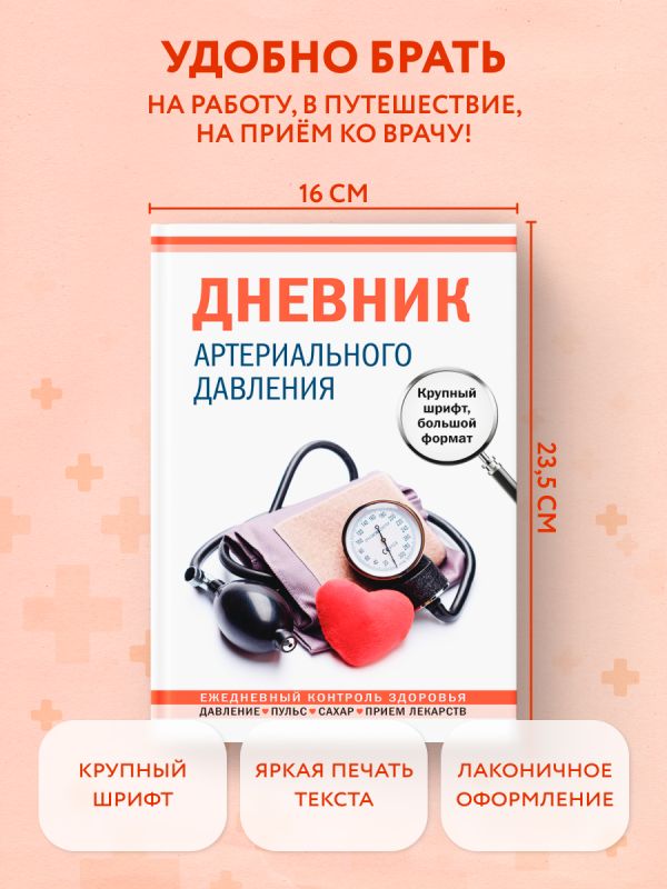 Дневник артериального давления. Крупный шрифт, большой формат