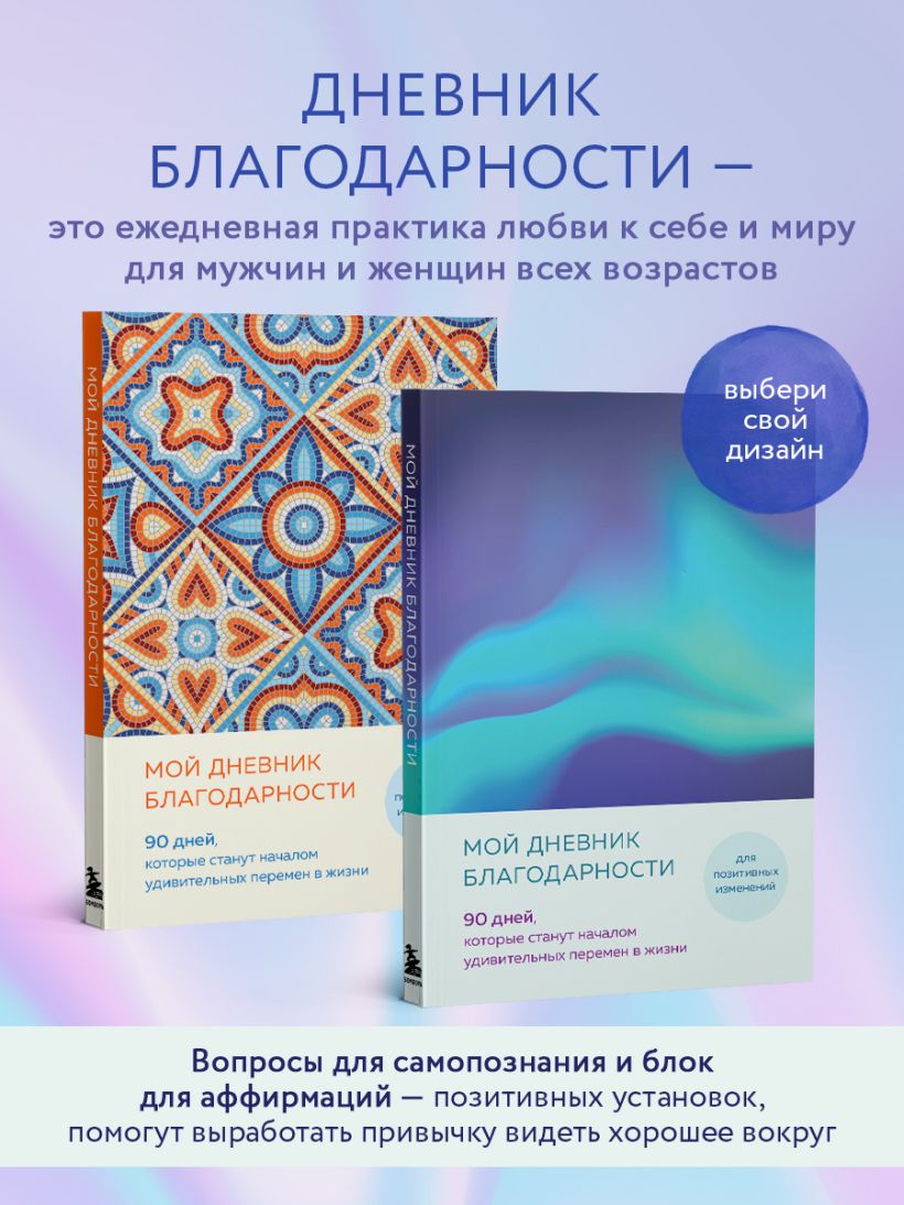 Дневник благодарности — это помощник в ежедневной практике любви к себе и миру. Заполнять его могут мужчины и женщины всех возрастов. Внутри вы найдете вопросы для самопознания, а также блок для аффирмаций — позитивных установок, которые помогут выработать привычку концентрироваться на хорошем.
