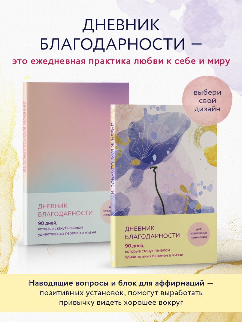 Дневник благодарности — это ежедневная практика любви к себе и миру. Наводящие вопросы и блок для аффирмаций — позитивных установок, помогут выработать привычку видеть хорошее вокруг. Порой стоит притормозить в ежедневной гонке и заметить маленькие радости: чашечка ароматного кофе утром, теплый ветерок в волосах, потрескивание дров в камине или шлейф любимого парфюма.