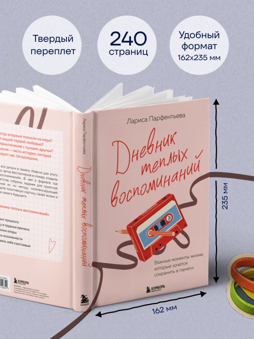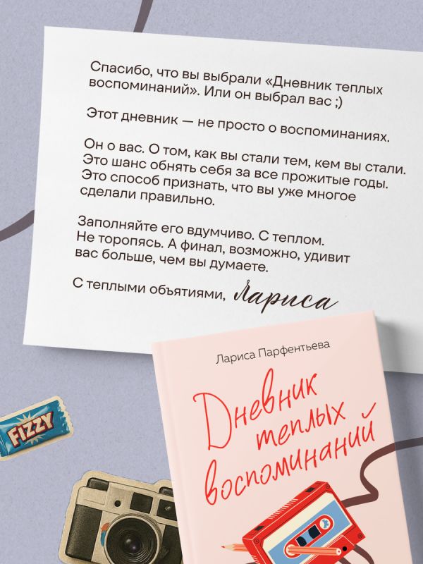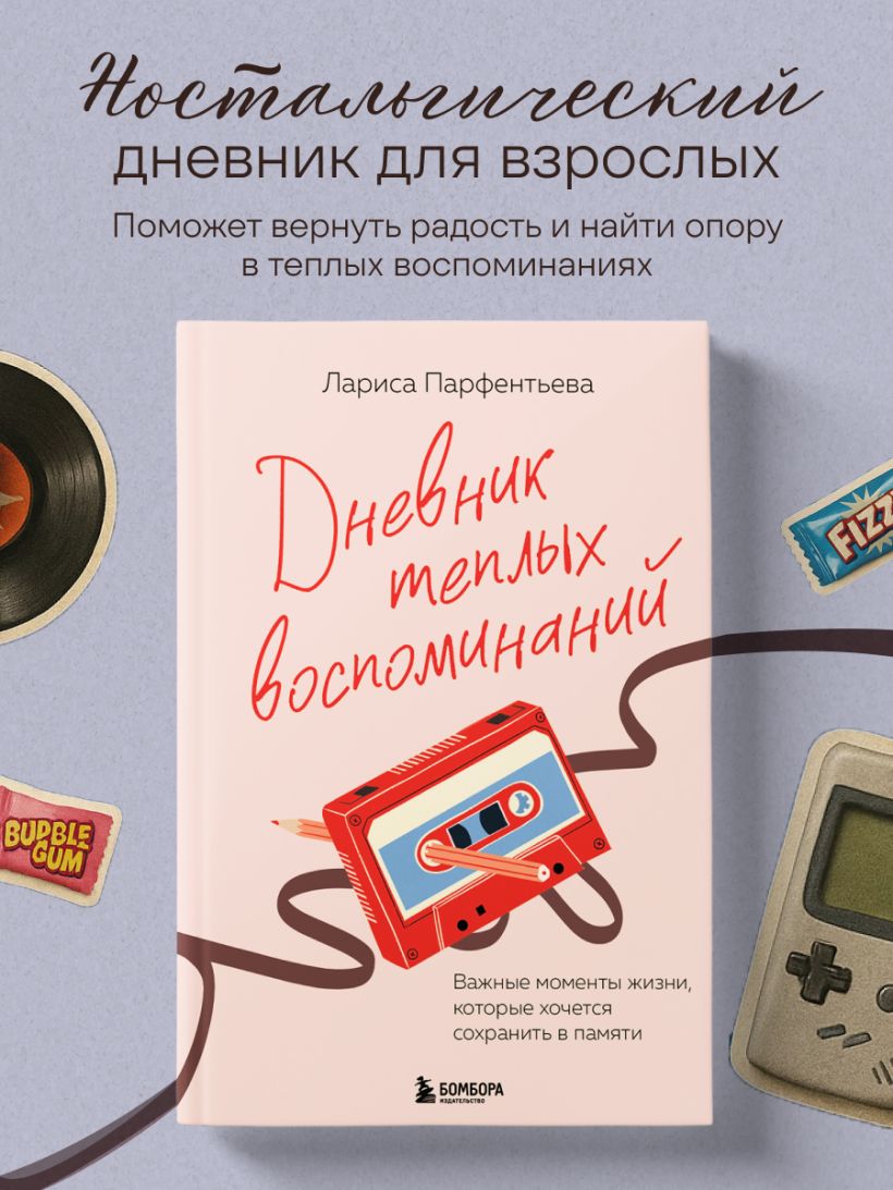 Не просто удержать все детали в памяти. Именно для этого Лариса Парфентьева, автор бестселлеров и спикер, создала «Дневник теплых воспоминаний». В нем в формате той самой анкеты из детства собраны задания для приятной ностальгии. Выполнив их по методу «компенсирующей истории», вы создадите позитивную картину своей жизни и увидите новый образ своего будущего.