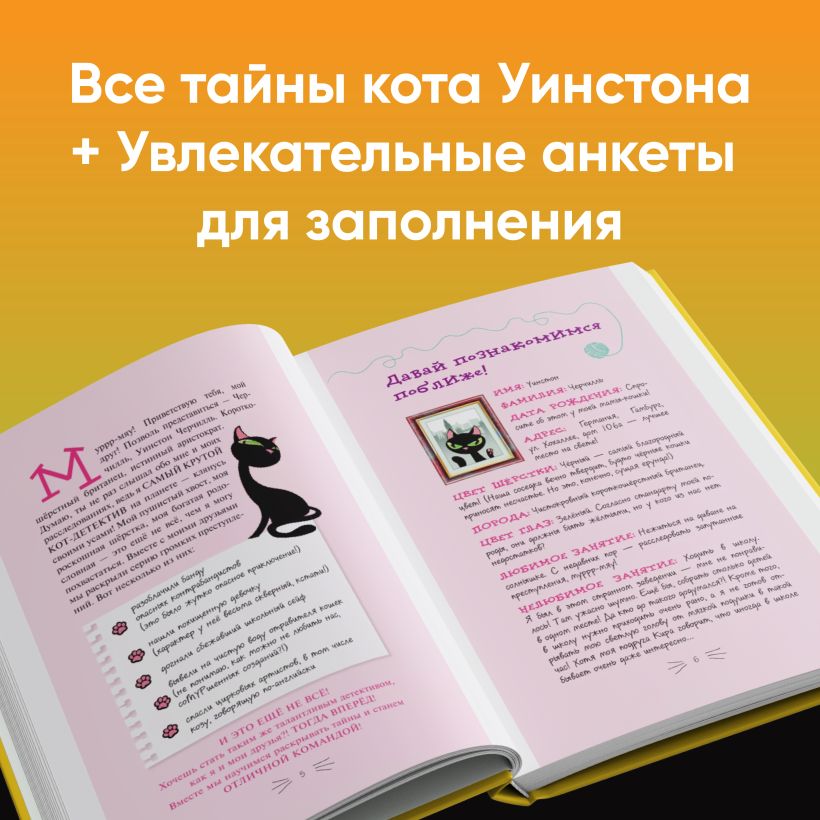 Муррр-вау! Вот что скажешь ты, когда откроешь этот дневник! Но для начала позволь представиться: я Уинстон Черчилль, короткошёрстый британец, кот-аристократ и самый известный усатый детектив в мире! На моём счету уже не одно раскрытое преступление, и я наконец готов поделиться своими знаниями и талантами (и речь идёт не только о поедании куриной печёнки на скорость!). Нас с тобой ждёт захватывающее приключение: мы научимся писать секретные послания, рисовать карты загадочных мест, пройдём через запутанный лабиринт и, конечно, не забудем о веселье! Увлекательные задания, тайны и море сюрпризов — вот что ждёт тебя на страницах этой книги. Святые сардины в масле, будет клёво!