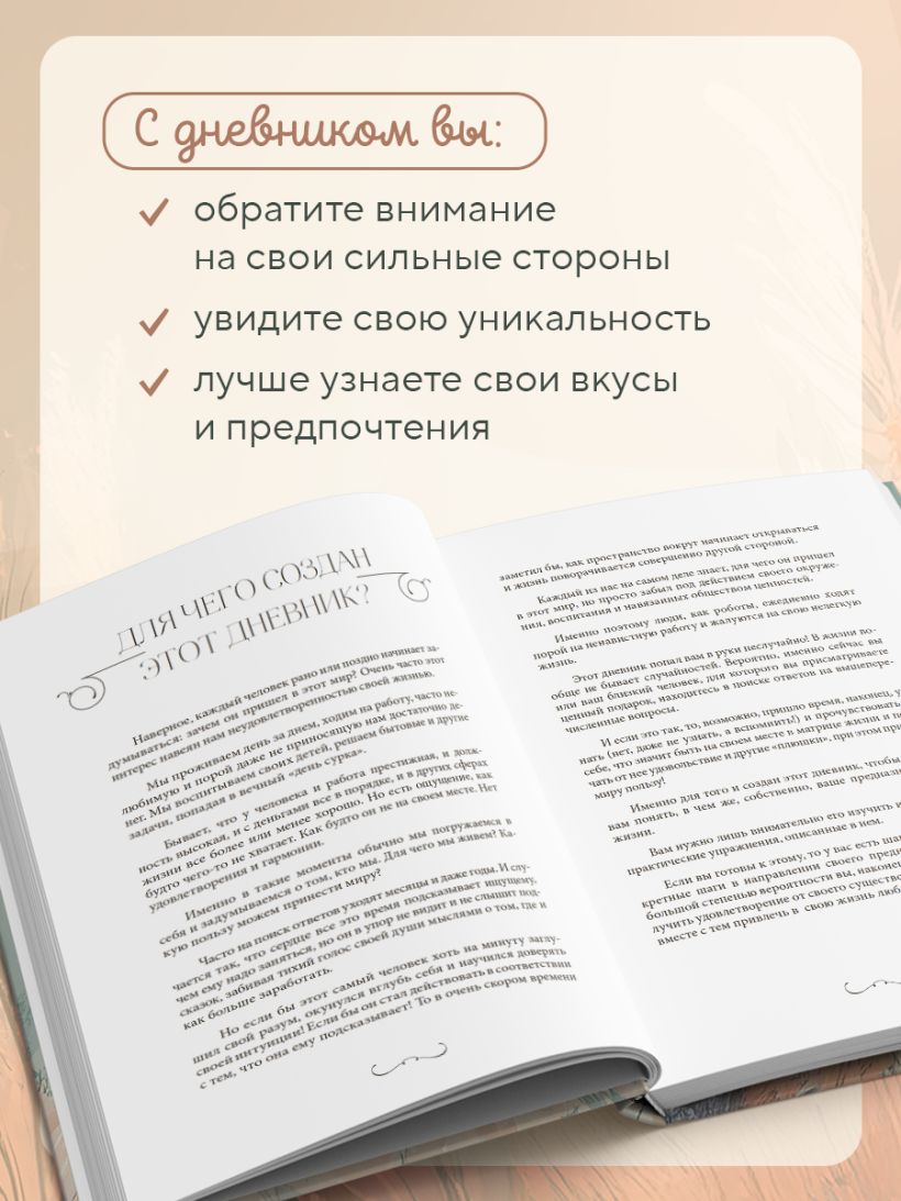 ХИТ ПРОДАЖ 2025 ГОДА В НОВОМ ОФОРМЛЕНИИ ПРЕМИУМ-КЛАССА! Самосбывающийся дневник / блокнот / планер (сущ.) рабочий инструмент для саморазвития и создания лучшей версии жизни. 5 причин, из-за которых я веду Самосбывающийся дневник – мой любимый ежедневник для саморазвития: 1. Первая причина – это ты, а вторая – все твои мечты. (с) Игорь Николаев 2. Хочу стать более счастливым и благодарным! Наш мотивационный ежедневник помогает найти время для себя и развивать привычку благодарности. Исследования в области психологии показывают, что благодарность снижает стресс, улучшает сон и уменьшает симптомы депрессии. Записывая хорошие моменты, ты учишь мозг замечать их в жизни. 3. Хочу добиться своих целей! Доказано, что люди, записывающие свои цели, достигают их на 40% чаще! Менее 3% всех людей фиксируют свои намерения на бумаге, но именно они чаще всего добиваются успеха. Наш ежедневник поможет тебе не терять фокус и двигаться к мечтам. 4. Хочу повысить продуктивность и развить свой мозг! Ведение дневника — это не просто запись мыслей, а инструмент для осознанных решений. Научные исследования подтверждают: регулярные записи улучшают память, развивают креативность и помогают принимать более осмысленные решения. 5. Хочу превратить свою жизнь в увлекательную игру! Каждый день в нашем ежедневнике – это мини-квест. Он превращает саморазвитие в игру: 6 минут утром + 5 минут вечером – и ты осознанно меняешь свою жизнь. Play your life! Самосбывающийся дневник – это не просто еженедельник или недатированный планер. Это твой личный трекер новых привычек и мощный мотивационный инструмент, благодаря которому ты не просто веришь в чудо, ты создаёшь его сам, благодаря магии мозга по имени нейропластичность. Что внутри? 52 страницы вдохновляющий книги, 3 месяца практических упражнений и новых привычек, меняющих жизнь к лучшему; 264 страницы планинга с юмором, вдохновением, креативными идеями и любовью. Сделано в России. Как и твои самые смелые мечты. Ежедневники идеально подойдут в качестве подарка для вашей любимой девушки, женщины, мамы, сестры, или подруги, дополнят подарочный набор на Новый год (НГ), 8 Марта, день рождения, День святого Валентина (14 февраля), День учителя и другие праздники.