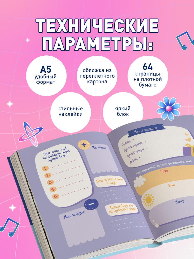Красочно оформленный дневничок станет отличным подарком для девочки младшего и среднего школьного возраста. А качественные материалы, из которых он выполнен, позволят сохранить записанное в него на долгие годы. В нем есть все, чтобы любая захотела поделиться с ним своими мыслями и желаниями, и даже секретиками.