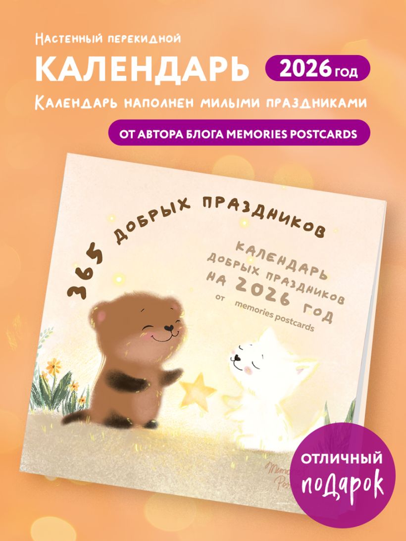 - Настенный календарь “365 добрых праздников” на 2026 год (memories postcards, 300×300 мм) — каждый день отмечен теплыми событиями и поводами для улыбки. Это календарь, который превращает обычный год в череду маленьких радостей.