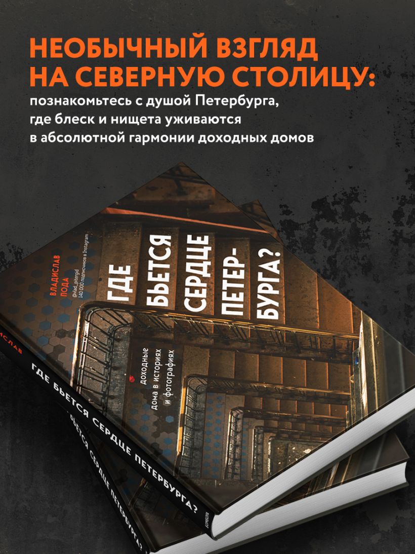 Автор этой книги — экскурсовод, фотограф и блогер Влад Пода. В его профиле в социальных сетях уже 134 тысячи подписчиков. Влад влюблен в Петербург, проводит экскурсии по крышам и парадным и искренне делится своей любовью с читателями. Все фотографии для книги он сделал сам, чтобы вы смогли увидеть каждую архитектурную деталь и проникнуться духом неформального Петербурга.