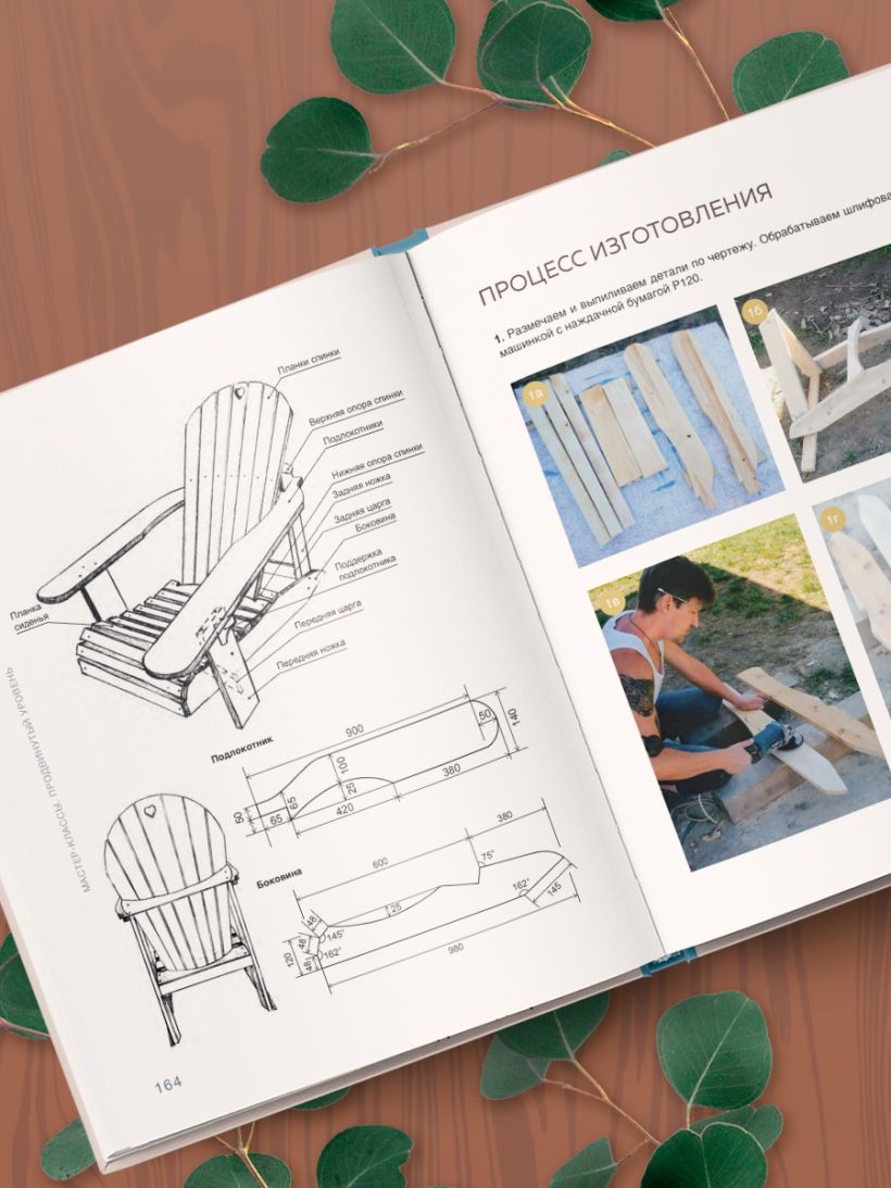- Для самых продвинутых — сложные, масштабные мастер-классы: шезлонги «Адирондак» для взрослых и детей, стол для веранды и детский домик на дереве.