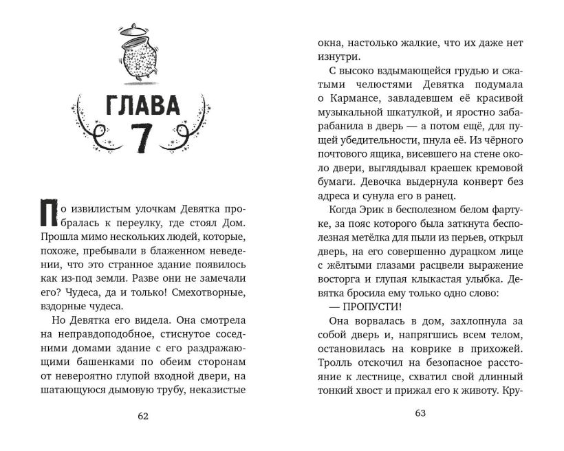 Девятка никогда не сталкивалась с опасной магией. До тех пор, пока ей в руки не попало странное украшение в виде домика. Стоило девочке постучать в крошечную дверцу, как здание… начало расти! Оказывается, внутри заколдованного Дома уже много лет заточены волшебные существа. И, согласно легенде, снять опасное проклятие может лишь первый постучавший в дверь. Но справится ли Девятка?! Неужели именно ей придётся спасти Дом и его обитателей?