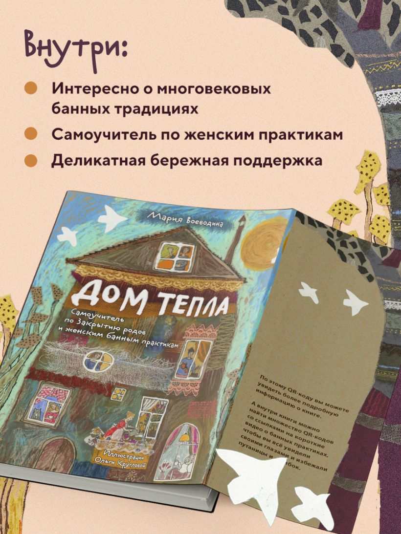«"Дом Тепла" — книга-навигатор, она поможет понять, как получить поддержку и как помогать другим, если ты хочешь сама сопровождать женщин во время тех перемен, которые с ними происходят. Тут про бани, про бизнес-завтраки, про женские круги, про ритуалы и церемонии, про вечную, как этот мир, передачу тепла от одной из нас к другой. Чтобы жизнь продолжалась». — Ирина Мальцева, психолог, преподаватель психологии, блогер