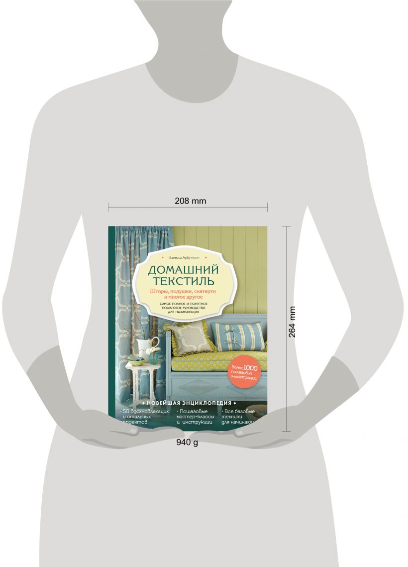 Текстильный декор дома — это то, что делает ваш дом теплым, уютным, определяет его принадлежность к тому или иному стилю и придает определенное настроение. Создавая текстильный декор самостоятельно, вы не только сэкономите кучу денег, но и прокачаете свои швейные и творческие навыки. Дизайнер Ванесса Арбутнотт проведет вас шаг за шагом по пути изготовления 50 проектов, каждый из которых выполнен в одной из красивейших набивных тканей ее собственного дизайна. Все проекты снабжены простыми в использовании иллюстрированными инструкциями. Проекты варьируются от простейших наволочек для начинающих до штор сложной конструкции или прекрасного столового белья. Существует также глава об аксессуарах, таких как кухонный фартук или салфетки для стола, это станет прекрасным поводом отточить свои навыки, прежде чем взяться за более сложный проект. Ванесса рассказывает о своих коллекциях и на собственном примере объясняет, что делать, если вы предпочитаете выбирать тот или иной материал или дизайн, дает множество советов по выбору тканей, использованию цвета, крою, шитью.