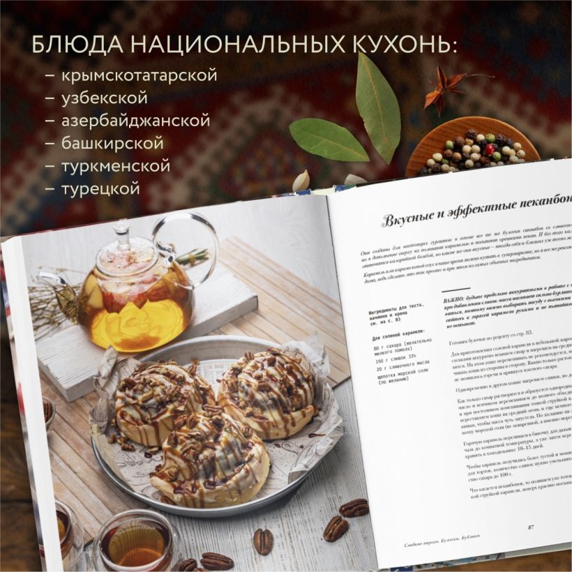 Самые теплые воспоминания детства всегда связаны с ароматами домашней выпечки. Булочки и торты, пирожки и беляши — каждый дом и каждая семья хранит свои рецепты выпечки, которая ассоциируется с теплом, уютом и любовью. Тюльпанна Шаипова делится с вами рецептами своей семьи, некоторые из которых передавались из поколения в поколения. Это рецепты блюд традиционной крымско-татарской, татарской, узбекской и другой кухни, которые занимают важное место в нашей культуре: от самсы и перемячей до чак-чака и пахлавы. Помимо национальных блюд в книге также представлены рецепты любимых тортов, пирожных, печенья, булочек и другой выпечки. Пеките с удовольствием и радуйте своих близких!
