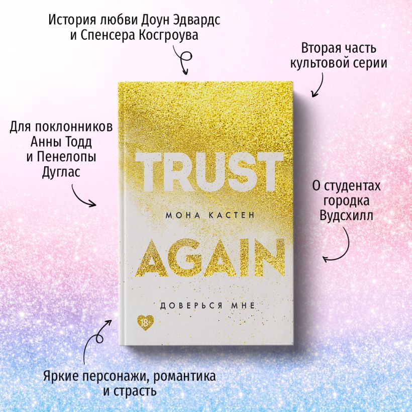 «Доверься мне» — вторая книга новой серии Моны Кастен. Это история совершенно новых героев. Именно благодаря этой серии читатели узнали о ней, она открыла писательнице путь на верхние строчки рейтингов немецких магазинов. Идеально подойдет всем, кто полюбил книги Моны Кастен, а также является поклонником творчества Анны Тодд и Пенелопы Дуглас. Высокие рейтинги на Goodreads, Amazon и других крупнейших площадках.