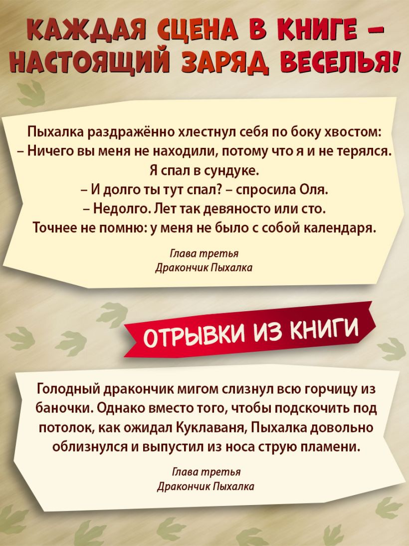 ИНТЕРАКТИВ — РАСКРАСКИ НА ФОРЗАЦАХ! Форзацы книги — это не просто страницы, а настоящее поле для творчества. Дайте волю воображению — раскрасьте четыре сказочные сцены и оживите волшебный мир дракончика Пыхалки по своему вкусу!