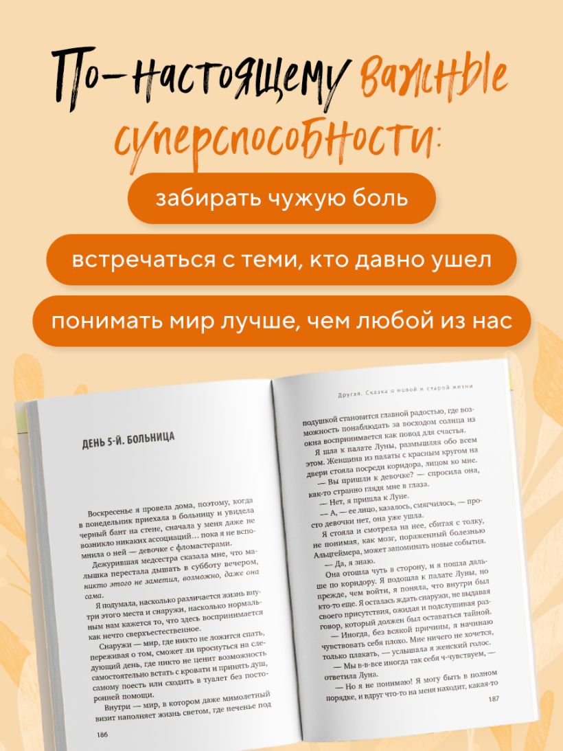 Книга точно понравится любителям неожиданных сюжетных поворотов и добрых историй о жизнерадостных людях, переживающих трудные времена. «Другая» поможет переосмыслить свое отношение к трудностям, увидеть в них смысл и развитие и испытать благодарность за то, что есть в жизни.