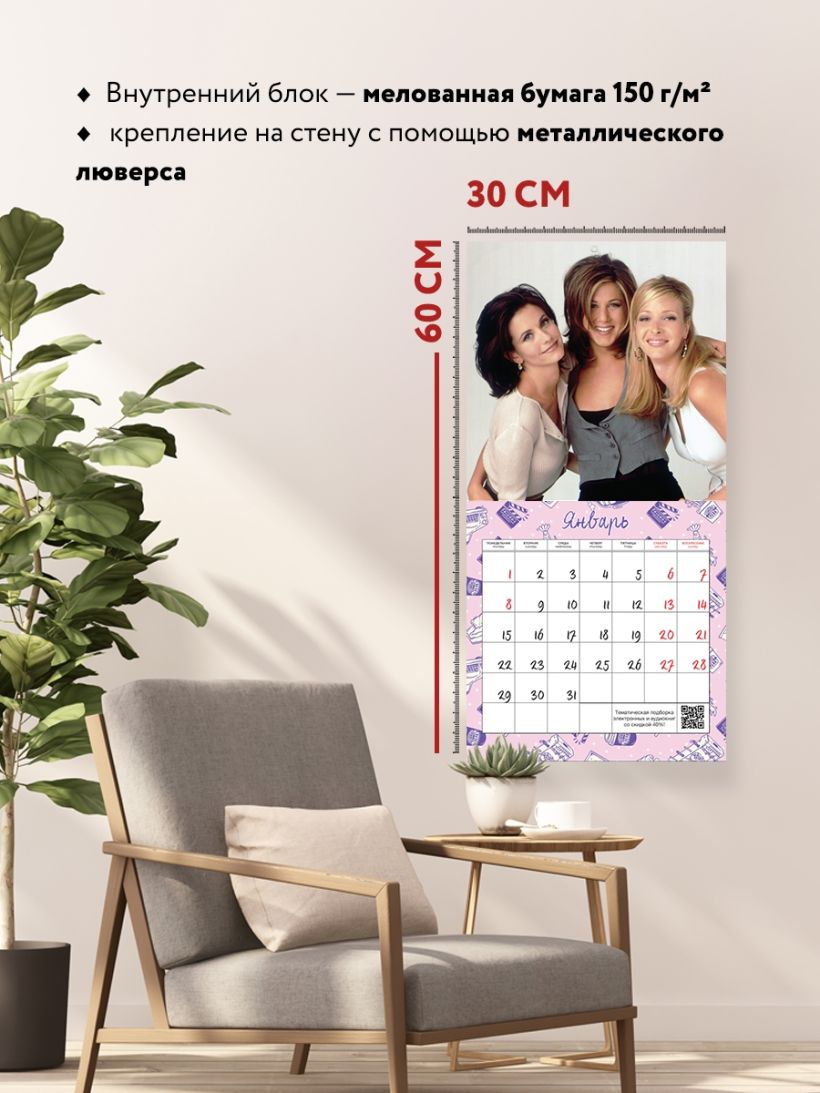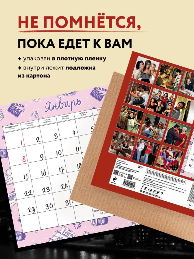 ЛИЦЕНЗИЯ! Официальная продукция по сериалу «ДРУЗЬЯ»! Великолепный лицензионный настенный календарь на 2024 год с самыми крутыми кадрами из сериала! Моника, Чендлер, Рейчел, Росс, Джо и Фиби ждут вас внутри! Отличное полиграфическое исполнение и удобная сетка, в которой отмечены все государственные праздники, — все это будет дарить вам такие незабываемые эмоции каждый день, что вы не заметите, как пролетит целый год! Проведите год в компании друзей!