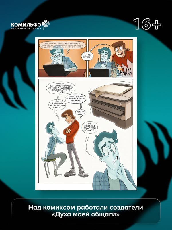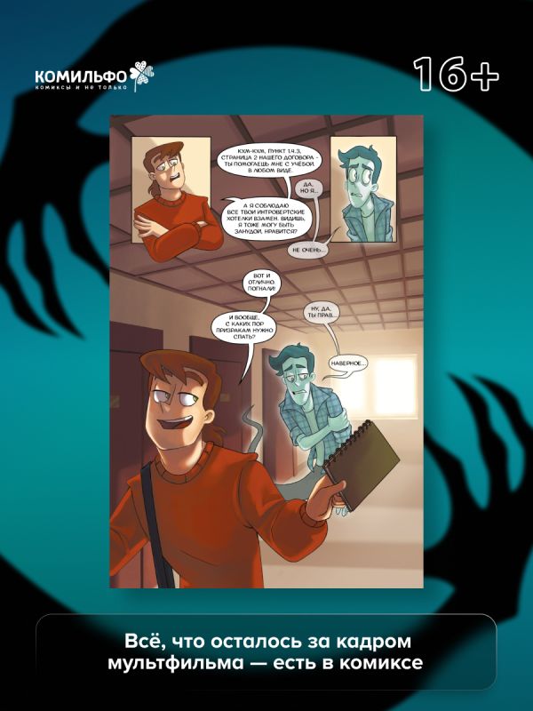 Данный комикс - не только предыстория знаменитого мультика от студии «Феникс», но и целый кладезь информации о его создании! Мультфильм «Дух моей общаги» собрал уже более 10 миллионов просмотров на YouTube, и комиксы по вселенной сериала не уступают ему в популярности! Ведь именно они являются в некотором смысле связующими звеньями между сериями, углубляют сюжет, а также раскрывают персонажей с новой, иногда неожиданной стороны.
