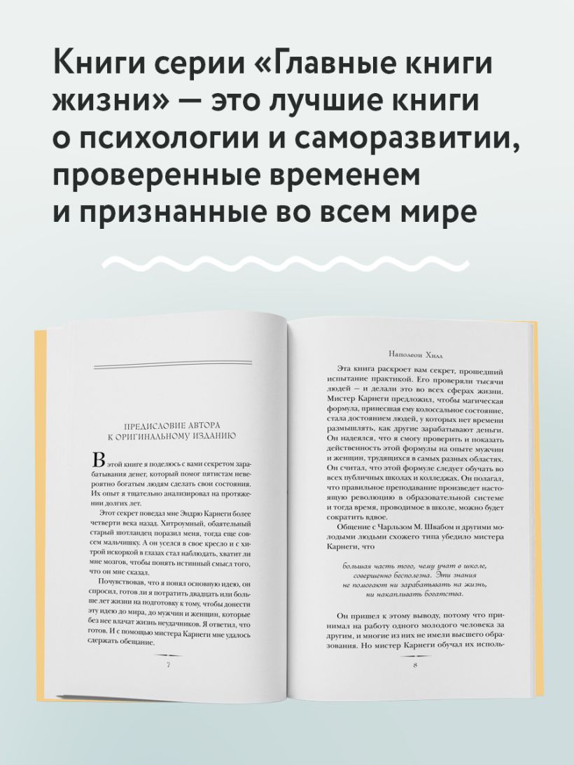 Более 80 лет «Думай и богатей» по праву считается самым уважаемым учебником в мире по достижению успеха, преодолению трудностей и повышению жизненной энергии. В нем автор утверждает: «Бедность — это состояние ума». Успех приходит к тем, кто мыслит категориями успеха».