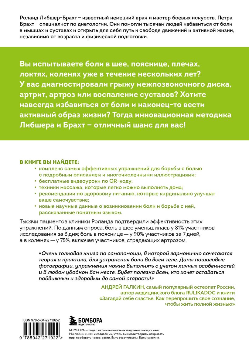 В книге представлена самая популярная в Германии уникальная инновационная методика, которая поможет вам быстро избавиться от боли в пояснице, шее, коленях и других частях тела и вернуть подвижность суставам. Терапевт и мастер боевых искусств Роланд Либшер-Брахт совместно с доктором Петрой Брахт разрабатывали и оптимизировали ее на протяжении 35 лет, чтобы вы могли начать путь к избавлению от боли уже сегодня.