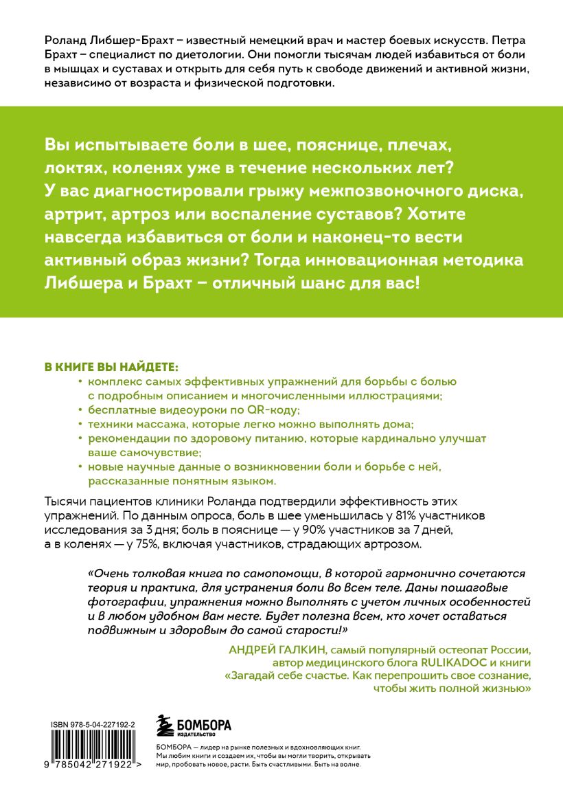 В книге рассказывается, как возникает боль и как можно самостоятельно избавиться от нее. В ней вы найдете комплексную программу упражнений, техники самомассажа и рекомендации по питанию, которые помогут навсегда избавиться от боли и держать себя в форме до самой старости.