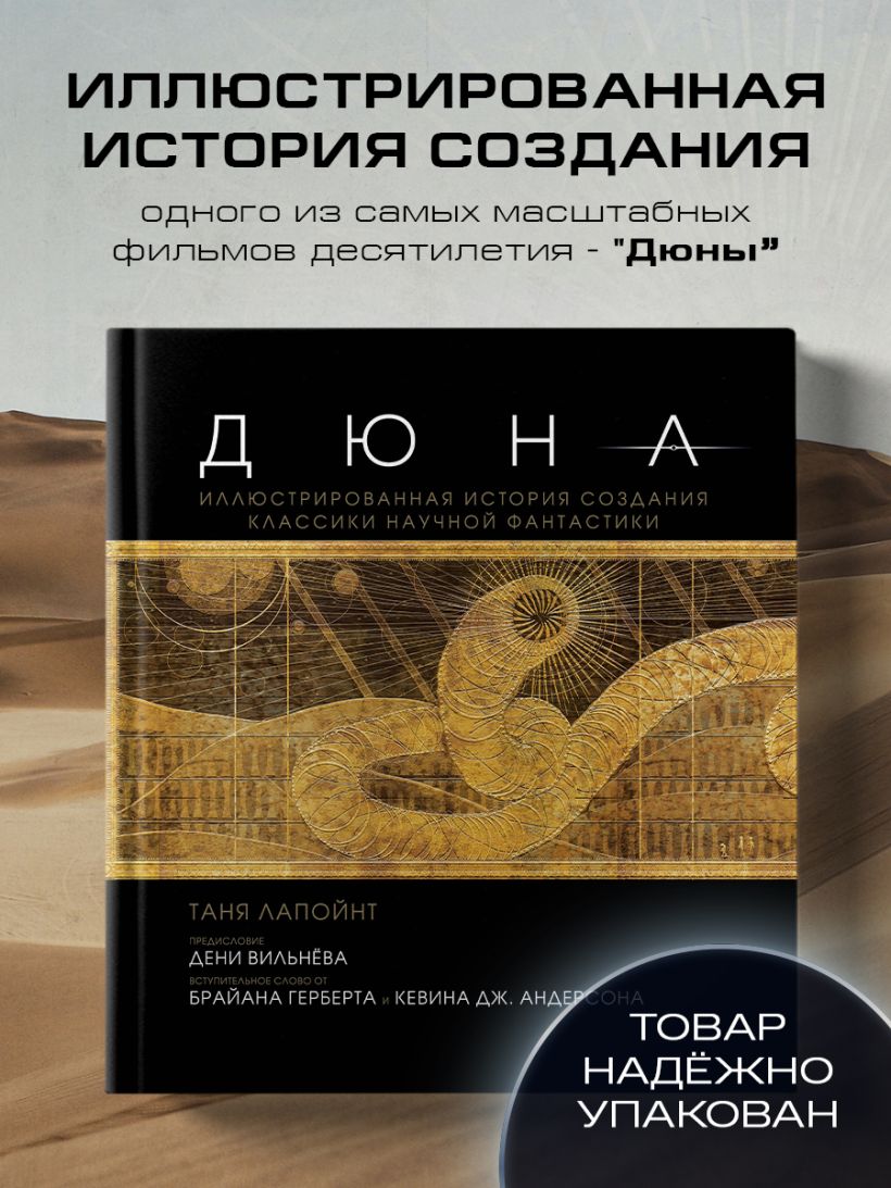 Эта книга — ваш визуальный гид по съемкам одного из самых масштабных фильмов десятилетия. Таня Лапойнт, автор книги и исполнительный продюсер фильма, расскажет читателям о том, как Дени Вильнёв воссоздал на экране великий роман Фрэнка Герберта и что получилось в итоге. Участники съемочной команды расскажут вам обо всех этапах кинопроизводства — от создания концепт-артов и поиска локаций по всему миру до пошива костюмов и сложного грима. А из эксклюзивных интервью с ключевыми актерами, среди которых Тимоти Шаламе, Ребекка Фергюсон, Оскар Айзек и Джейсон Момоа, вы узнаете, каково это — быть частью легендарной вселенной. Погрузитесь в завораживающий мир «Дюны»!