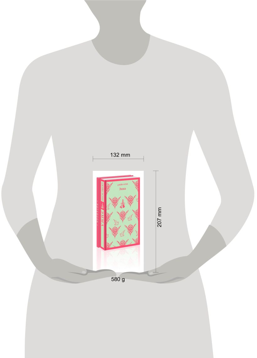 В набор входит роман Джейн Остен «Эмма» и тематический блокнот, повторяющий обложку книгу.